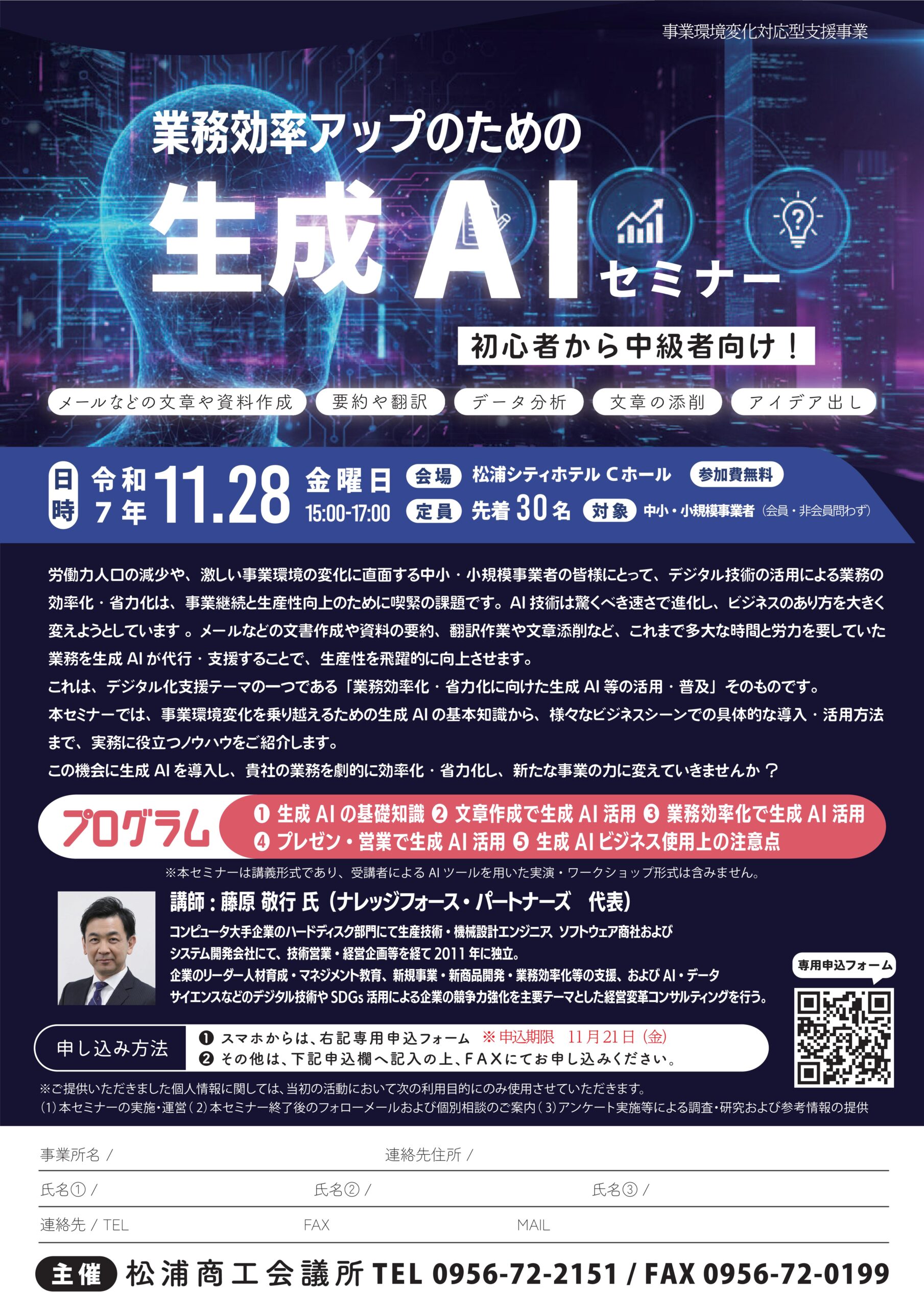 業務効率アップ!生成AIセミナーのご案内11月4日(火曜日) 国からのお知らせ