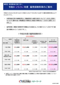 令和8年度 雇用保険料率・労災保険料率のご案内