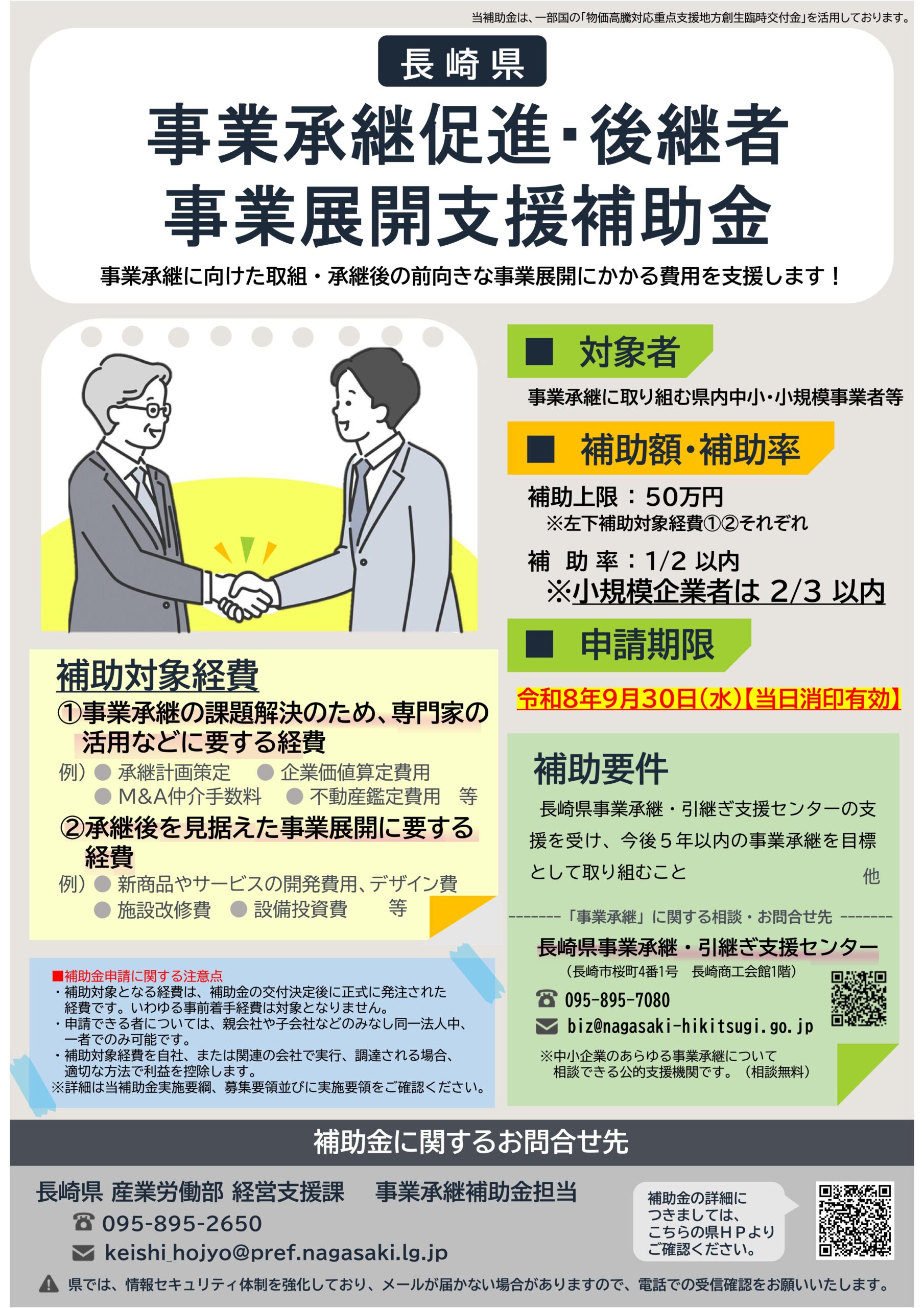 長崎県産業労働部経営支援課 事業承継補助金担当